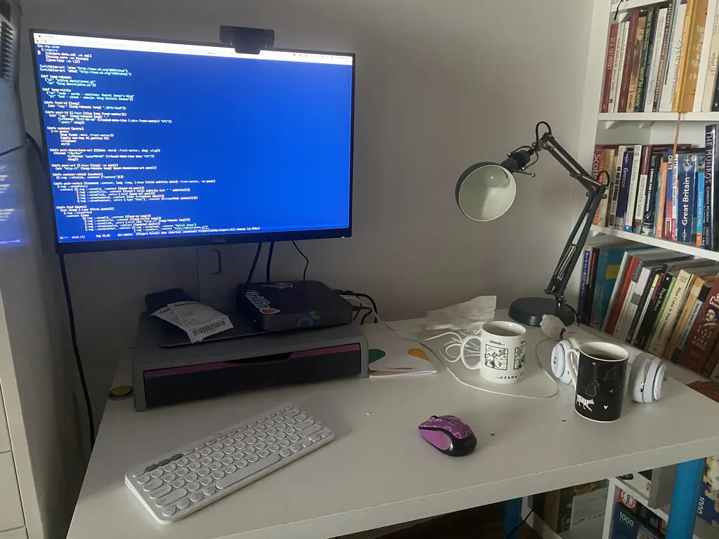 This is my home-office desk on a typical day. Yuck – look at those mugs, cables and rubbish!
